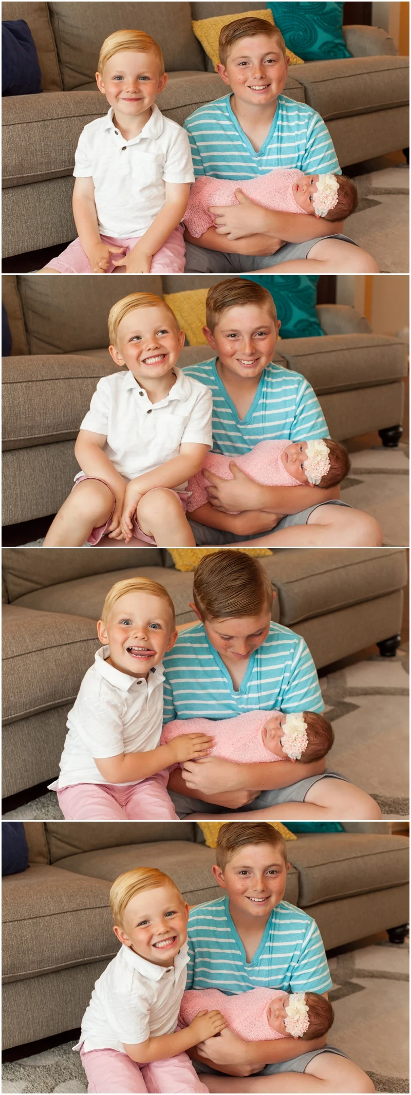 Later in the afternoon The House Boys arrived and it was no longer just us three girls. It was time for Ed (Leighton's Dad) and her two brothers (Jacob and Jude) to step in for a few shots. Wouldn't you know that it was a beautiful sunny afternoon while we were inside and a few minutes before we headed outside, it started to rain. Mother Nature has a way of always keeping me on my toes like that. Ha! One of the many things I love about Jenna and Ed is how easy going and go-with-the-flow they are. They just laughed when we looked outside and the rain turned into a downpour. Another thing I love about The House Family is they always look beautiful no matter when or where they are photographed. A little rain wasn't going to ruin my plans. We did their family portraits in the middle of their living room and it was perfect. Those images are so special and personal. I loved photographing the boys as they held their baby sister and smiled down oh so sweetly at her. I especially love the images of Jenna and Ed holding Leighton. You can feel the love the moment you see each of those images. Such a precious moment in time and I feel so honored to have been able to capture that for them.